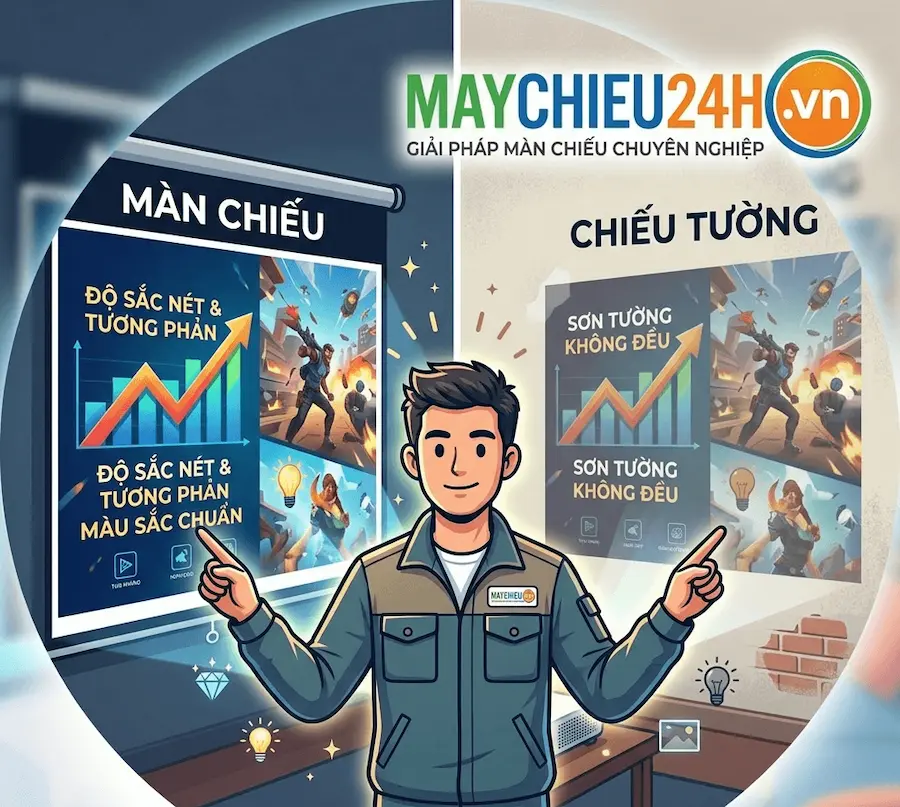 Trình chiếu Máy chiếu qua Màn chiếu Chuyên dụng hay Tường trắng? Lựa chọn nào tối ưu hơn?
