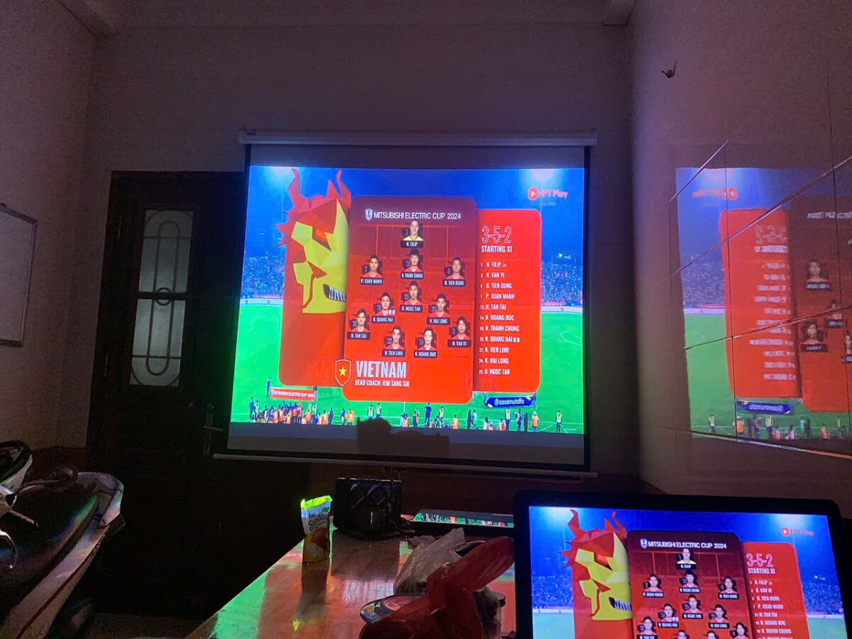 Gói Cafe / Nhà hàng Máy chiếu độ sáng cao + Màn 120″ Xem bóng đá Ngoại hạng Anh, Cúp C1, AFF Cup.