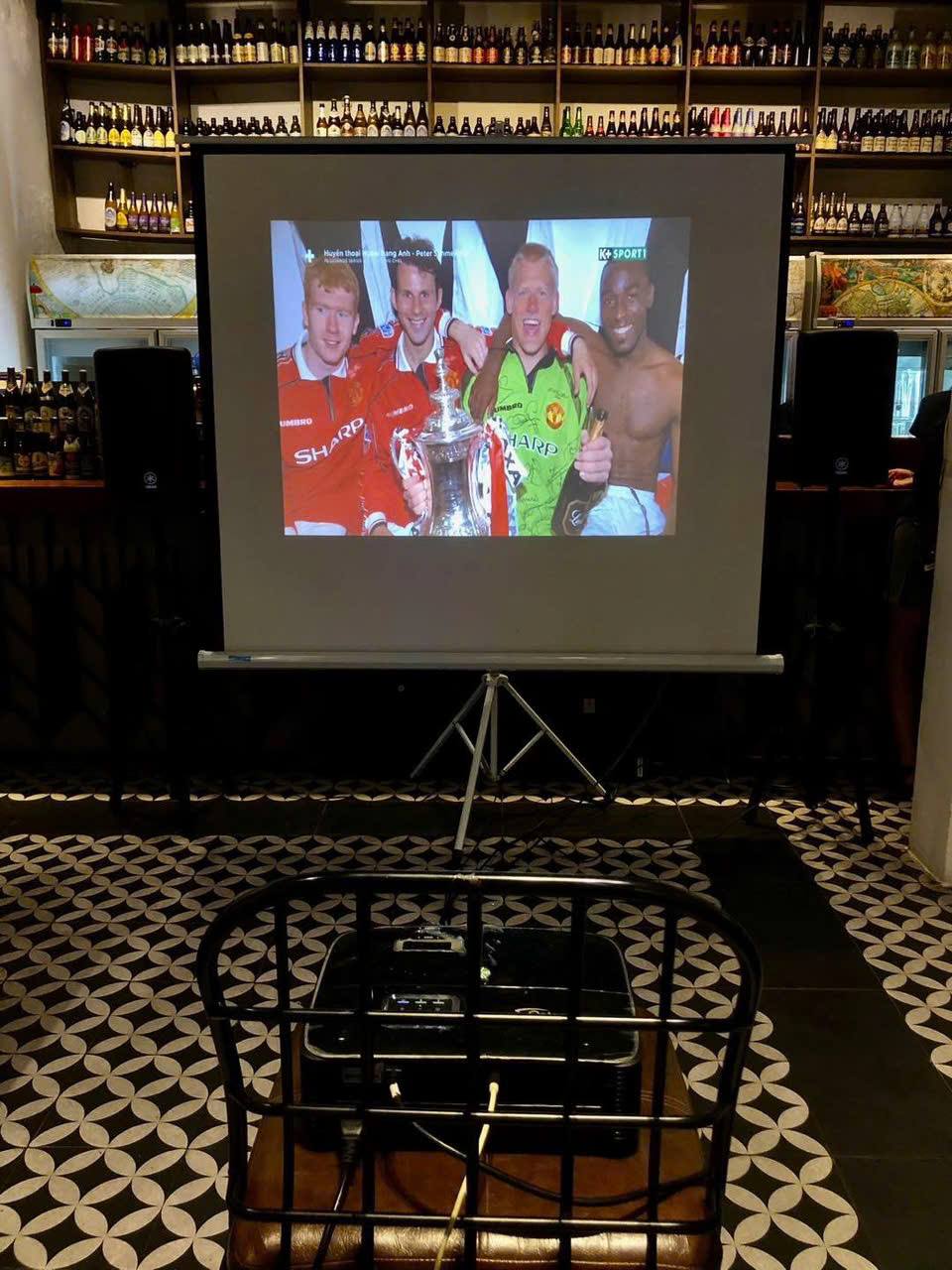Gói Cafe / Nhà hàng Máy chiếu độ sáng cao + Màn 120″ Xem bóng đá Ngoại hạng Anh, Cúp C1, AFF Cup.